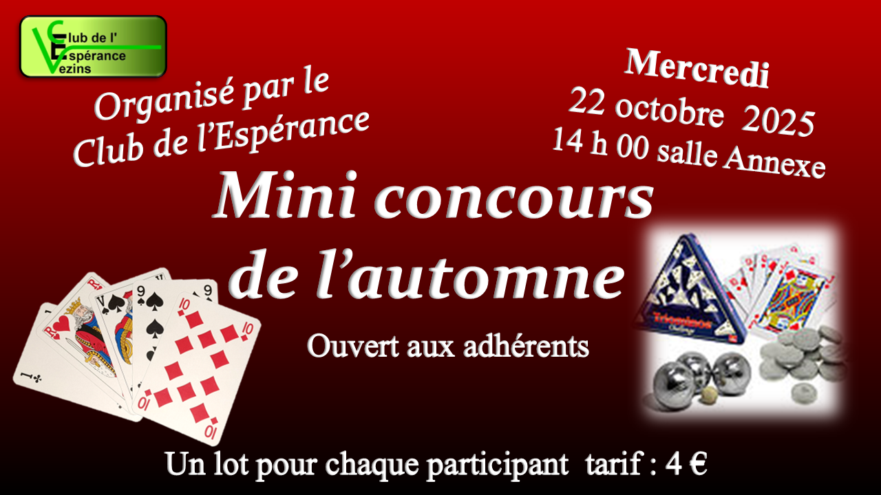 Mercredi 18 mars 2026 : Concours de Belote Interclubs ouvert à tous.