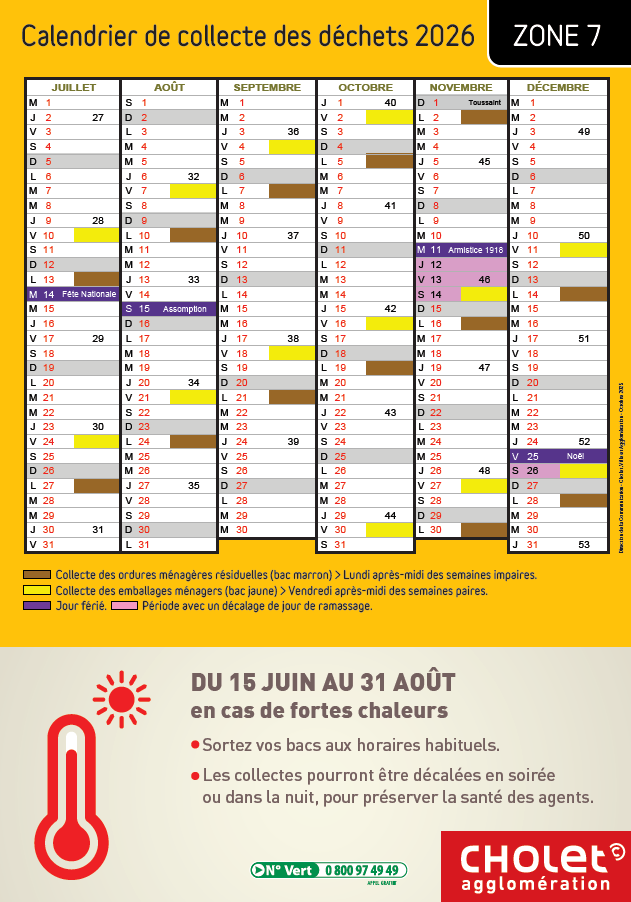 Contactez le service Gestion des Déchets au n° vert gratuit 0 800 97 49 49 ou par mail : contactdechets@choletagglomeration.fr